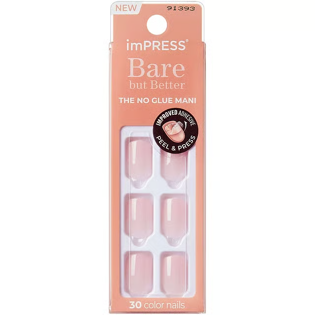 इम्प्रेस कलर प्रेस ऑन मैनीक्योर बिना गोंद, पॉलिश-मुक्त नाखूनों के लिए पहले से चिपका हुआ चिपकने वाला पदार्थ प्रदान करता है जो 7 दिनों तक टिकता है, और इसमें 30 छोटे नाखून, एक प्रीप पैड, मिनी फ़ाइल और मैनीक्योर स्टिक शामिल हैं
