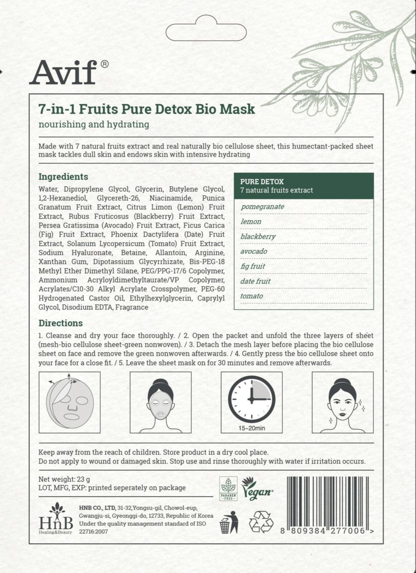 AVIF 7-IN-1 FRUITS PURE DETOX BIO-CELLULOSE MASK